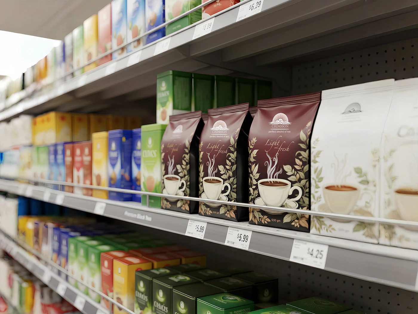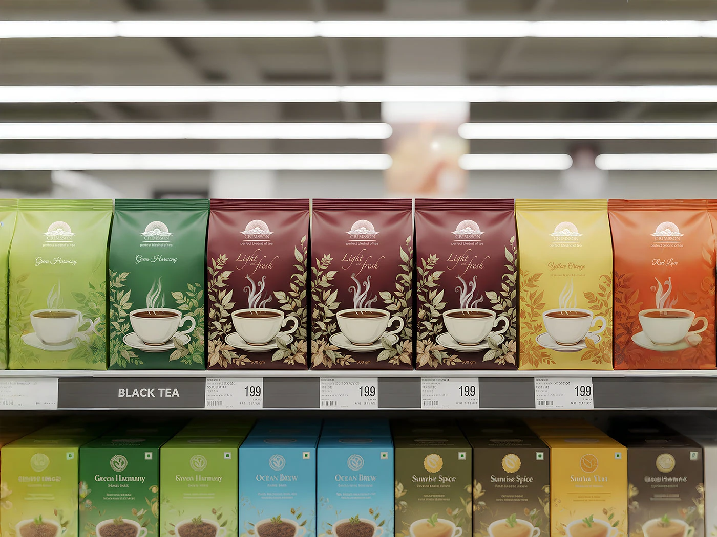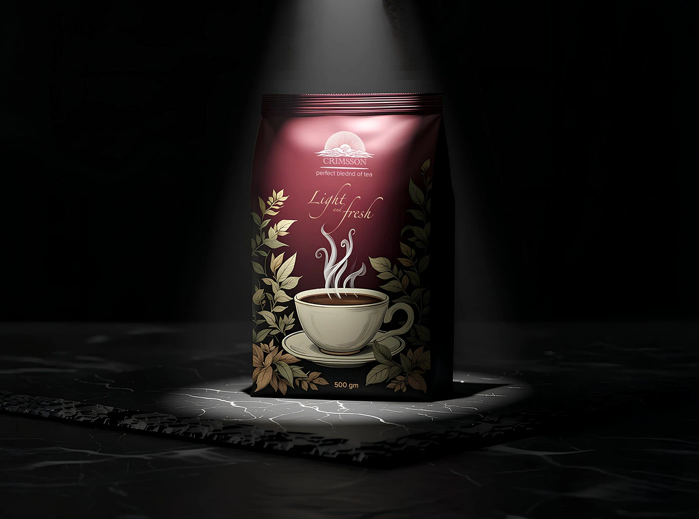 The core concept was “Clarity in Purity.” The design strips away unnecessary elements to focus on the essence of the product: a superior tea blend. The minimalist layout and confident typography allow the brand name and its unique selling points—”perfect bleeding of tea” and “light fresh”—to stand out with purpose and sophistication.